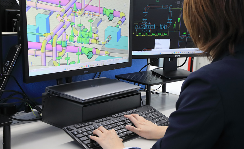 プラント内の各種配管・ダクト及び機器の配置計画・詳細設計を行っています。